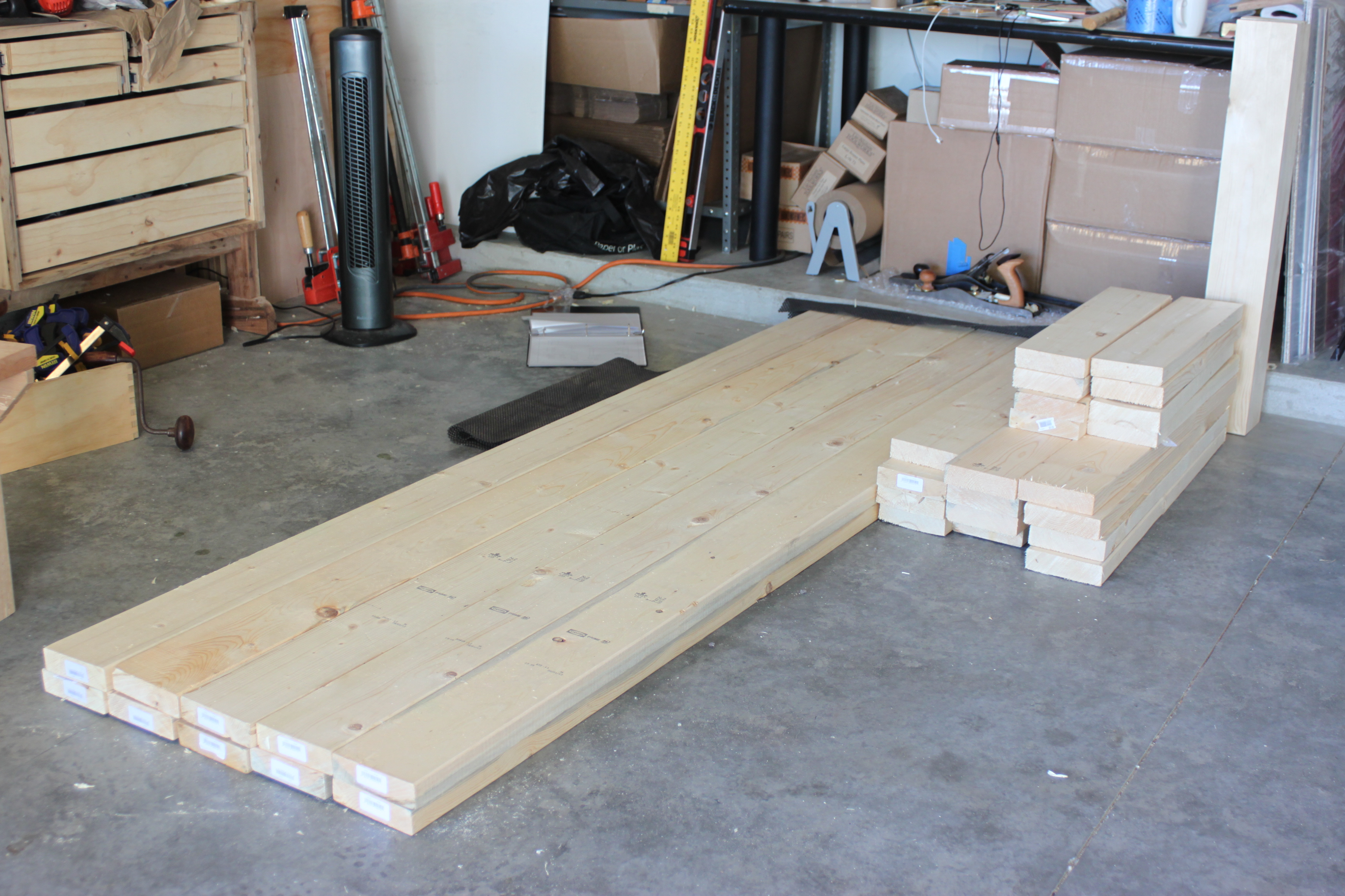 The plan calls for 117 bdft so to start off with I got 137.5 bdft worth of 2×6’s (25 boards). Now I know this will not be enough because of waste and what not but I’d rather need more than have extra right now. Every part of this bench will be laminated. The legs each are 5×5 pieces and take almost two full boards to make. That’s where this bench starts. Well, actually it starts on the ground because like the like I had mentioned, right now I have no bench to make my bench.